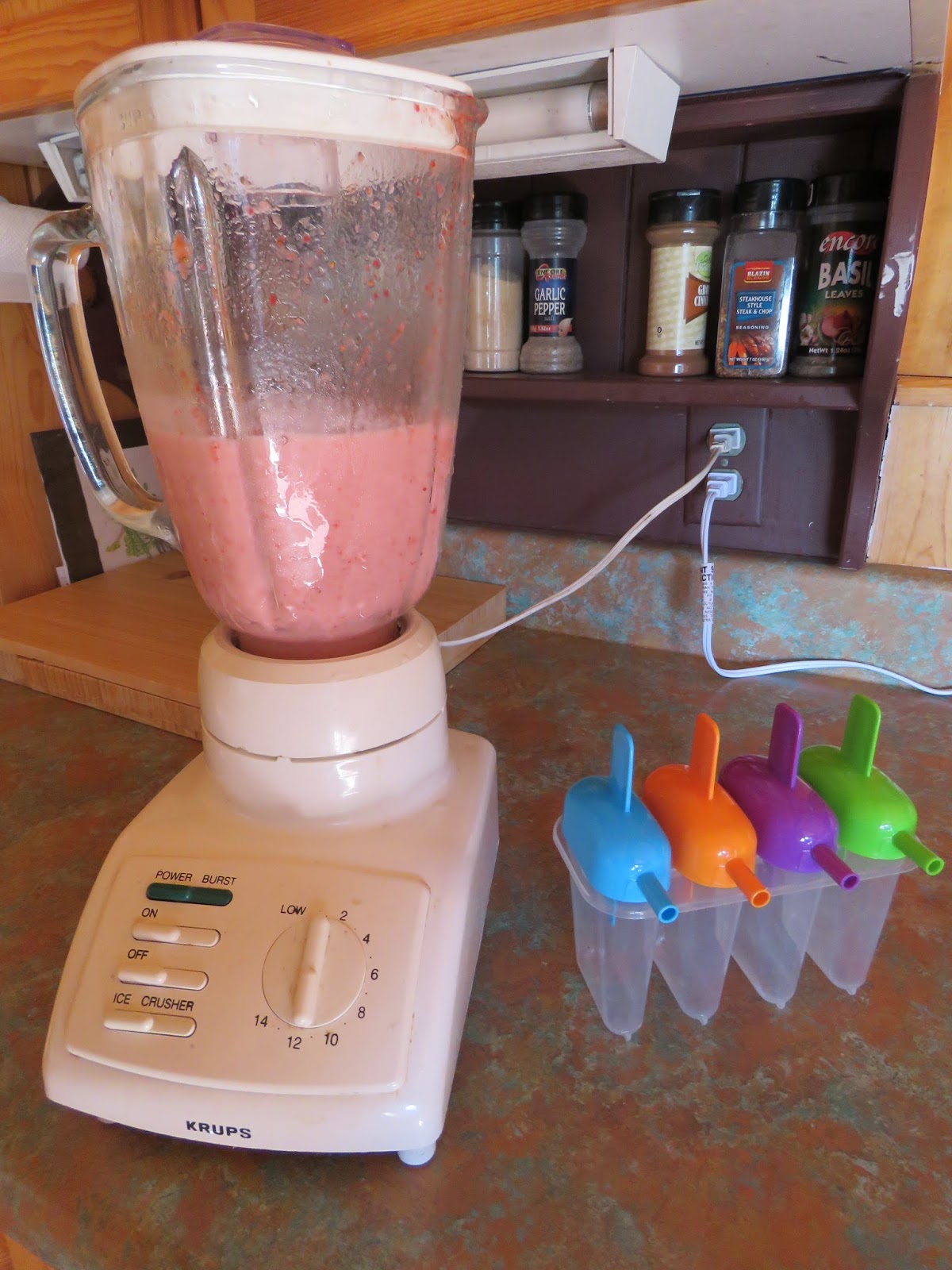 If you play your cards right, you can find a set of these 4 Ice Pop Makers at the Dollar Tree, for only $1. They make quite large popsicles. At our cabin I just have the one set, but at home I have 1 set of these big ones and then a set of 8 smaller ones (have the size).