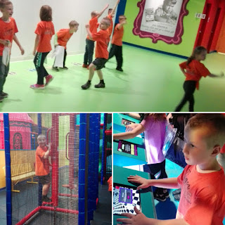This next picture is a good example of some of the large motor skill play areas as well as digital areas. Same with the bottom picture which is two pictures of my son and I in a digital area where it appears like crayon wax is dripping over us.